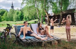 Der Thayarunde-Radweg führt direkt vorbei, auch für erhitzte Radler finden hier einen willkommenen Rastplatz um sich am Wasser zu erholen.