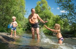 Im Sommer findet man bei der historischen Badehütte an der Thaya die Möglichkeit sich abzukühlen, zu plantschen und zu baden. Das Ufer ist hier mit Steinen fixiert und es bietet sich ein flacher Einstieg ins Wasser. An der Hütte gibt es weiters Liegen und Sitzgelegenheiten, sowie eine Feuerstelle zum Grillen.